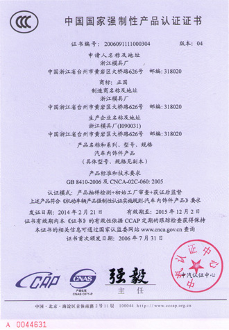 2006年和2007年先后通过了CCC认证和TS16949质量管理体系认证。